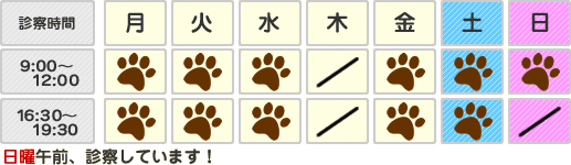 休診日:木曜日・祝祭日・日曜日の午後